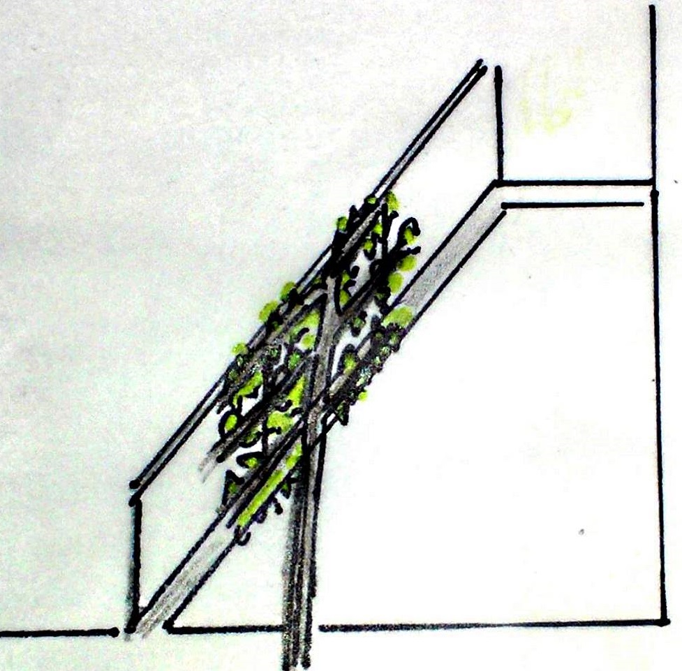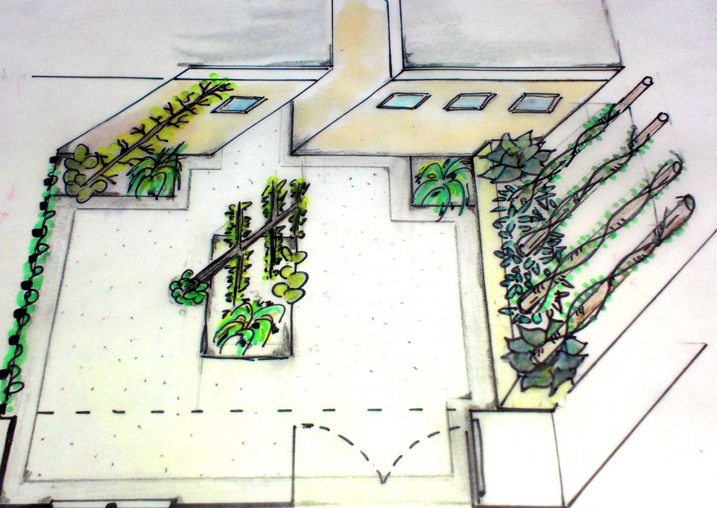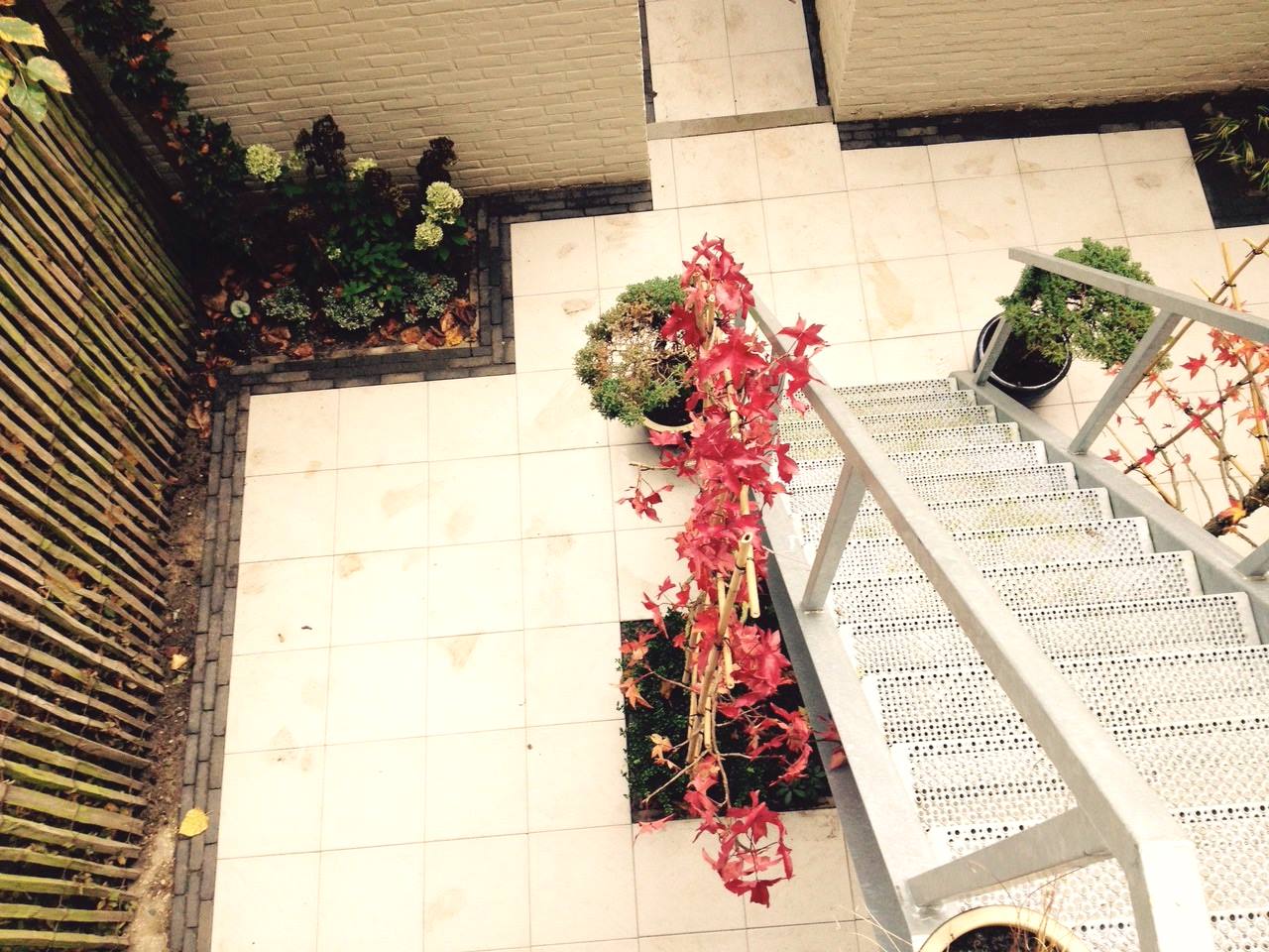 “… om mee te denken over mijn binnenplaats. Een klein, donker, koud, saai stukje grond wat door midden wordt gekliefd door een trap.